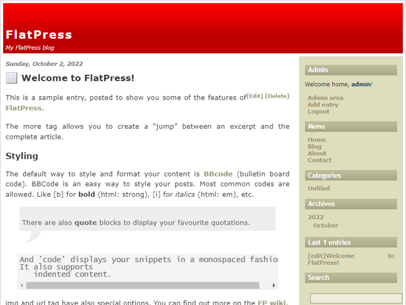 - Volg de official blog om te weten wat is gaande in de FlatPress wereld.
