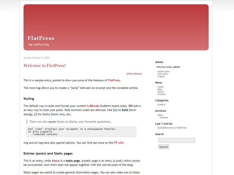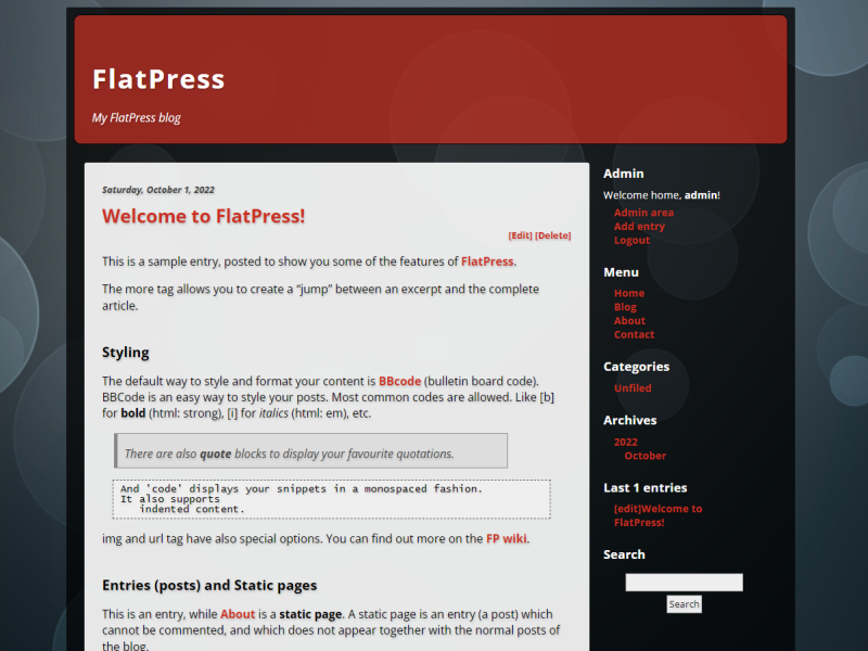 Dit is een voorbeeld vermelding, om je enkele functies te tonen van FlatPress.